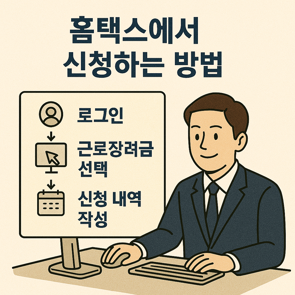 홈택스는 가장 일반적인 근로장려금 신청 방법이며, 신청 이력 조회와 예상 지급액 확인도 가능합니다.